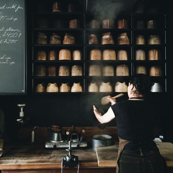 Οι SOM λοιπόν κατασκεύασαν ναι μεν ένα σύγχρονο εργαστήριο, διατηρώντας δε τη βιομηχανική αισθητική που είχε ήδη το κτίριο λόγω της προηγούμενης ιδιότητάς του. Μαυρισμένος χάλυβας, καρυδιά, και τοίχοι ντυμένοι με τούβλα είναι τα βασικά στοιχεία που συναντά κανείς στο κτίριο. Ράφια που ξεκινούν από το πάτωμα και αγγίζουν το ταβάνι γεμίζουν με προσχέδια καπέλων και κατασκευαστικά εργαλεία.