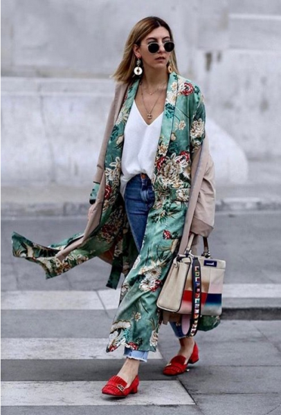 Παίξτε με τις αποχρώσεις του κιμονό, συνδυάζοντάς τες με τα αξεσουάρ σας όπως για παράδειγμα το ζευγάρι των παπουτσιών σας ή της τσάντας σας, ακόμη και των κοσμημάτων σας.
