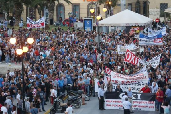 Με μαζική συμμετοχή στη διαμαρτυρία υποδέχθηκε η Λέσβος τον Τσίπρα [Βίντεο]