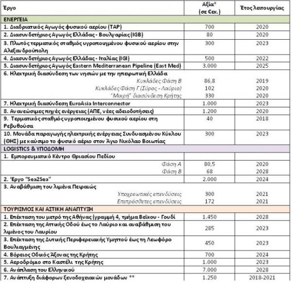 * Αναφέρεται στο υπολειπόμενο ποσό της επένδυσης (μέχρι την ολοκλήρωση του έργου) και στο τμήμα της επένδυσης που αφορά την Ελλάδα.