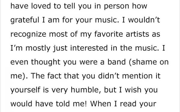 Όμως ο μουσικός δεν τα παράτησε και προσπάθησε και πάλι να φέρει το θέμα στη μουσική που ακούει, μήπως τότε είχε κάποιο αποτέλεσμα.