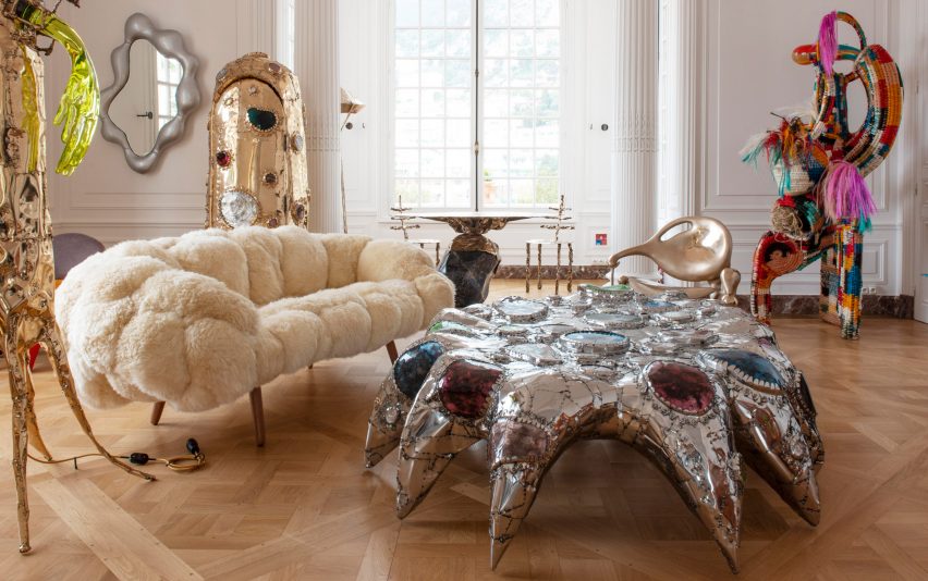 Ένα έπιπλο μπορεί όντως να διακοσμήσει και να στολίσει ένα χώρο τόσο πολύ, που να σε κάνει να πεις ότι όντως θα μπορούσε να είναι και κόσμημα. Η σκέψη αυτή βρήκε ανταπόκριση στη νέα σειρά επίπλων με περιορισμένα κομμάτια που κυκλοφόρησε ο Αμερικανός καλλιτέχνης και σχεδιαστής Μίσα Καν. Σχεδίασε τολμηρά έπιπλα με πολύχρωμα μεγάλα κοσμήματα, γυαλιστερό μέταλλο και θαλασσιά όστρακα.