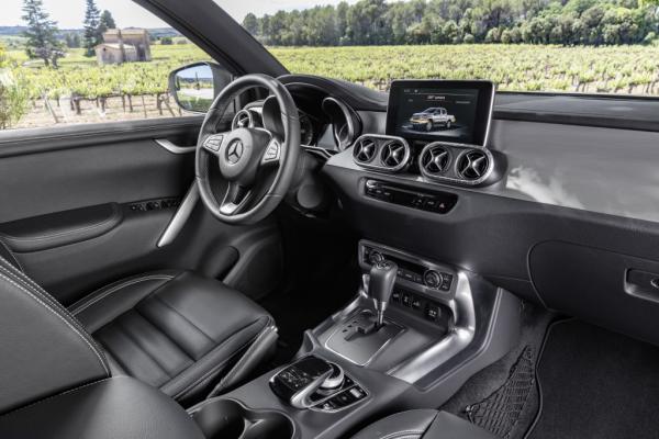 Μπορεί λοιπόν η ποιότητα των επιφανειών του ταμπλό να έχει προσαρμοστεί στα δεδομένα της κατηγορίας των pick-up, αποκτώντας παράλληλα και την απαιτούμενη ανθεκτικότητα στον χρόνο, ωστόσο, η πλειονότητα των χειριστηρίων και των εφαρμογών άνεσης και ασφάλειας προέρχεται αυτούσια από τα γνώριμα στους πολλούς μοντέλα της Mercedes-Benz.
