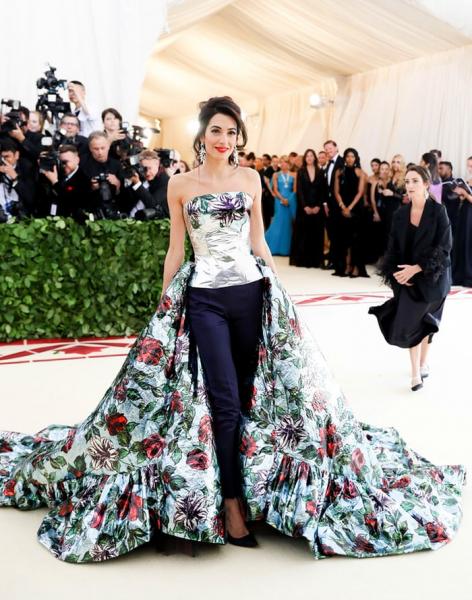 Η Αμάλ Κλούνι ήταν μία από τις οικοδέσποινες της βραδιάς και επέλεξε τον νεαρό Άγγλο σχεδιαστή Ρίτσαρντ Κουίν να την ντύσει για το γκαλά. Αμαρτία δεν είναι να είσαι εκτός θέματος όμως; Το απογοητευτικό σύνολο που επέλεξε δεν είχε άμεση επαφή με την έκθεση, εκτός αν αναφερόταν στον στολισμό του Επιταφίου και εμείς απλά δεν το καταλάβαμε.