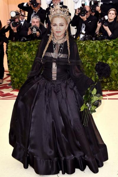 Με σύνολο Γκοτιέ η Μαντόνα κέρδισε τις εντυπώσεις φέτος. Με ένα κατάμαυρο φόρεμα, μία τιάρα με σταυρούς και μαύρα τριαντάφυλλα εμφανίστηκε στο κόκκινο χαλί της εκδήλωσης. Συντηρητικό για Μαντόνα αλλά στιλάτο.