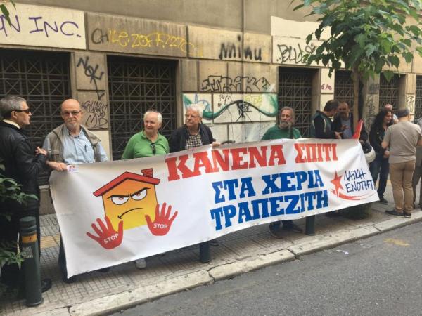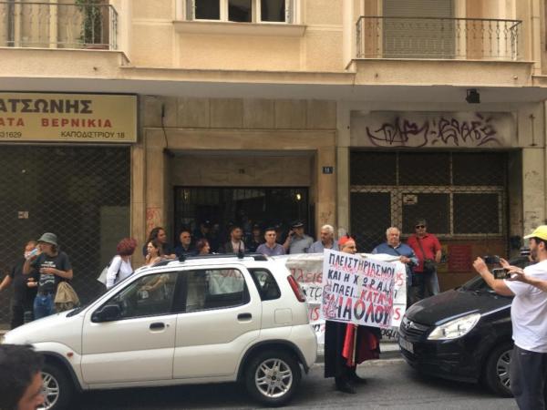 Νέα κινητοποίηση έξω από συμβολαιογραφικό γραφείο στην οδό Καποδιστρίου πραγματοποιούν κινήματα κατά των πλειστηριασμών