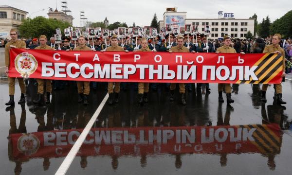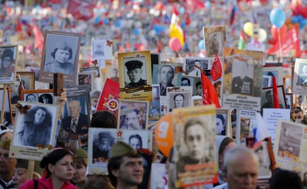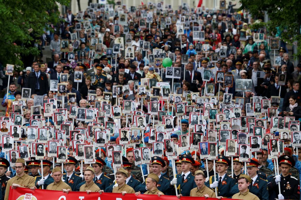 Χιλιάδες ρώσοι πολίτες βγήκαν στους δρόμους κρατώντας φωτογραφίες συγγενών τους οι οποίοι είτε πολέμησαν είτε σκοτώθηκαν κατά τη διάρκεια του Παγκοσμίου Πολέμου.