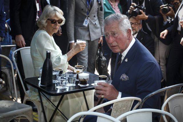 Στη συνέχεια το πριγκιπικό ζεύγος κάθισε σε γνωστό καφέ της πλατείας και απόλαυσαν από έναν κρύο καφέ.