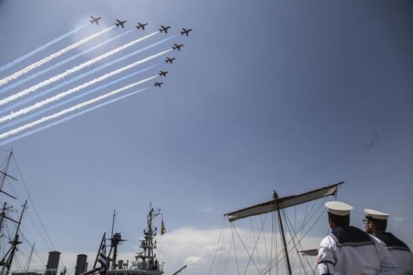 Αεροπορική επίδειξη με διέλευση αεροσκάφους Μ-2000-5, το οποίο ακολουθούσαν εννέα αεροσκάφη Bae Hawks του ακροβατικού σμήνους των «Red Arrows» της Βασιλικής Αεροπορίας της Μεγάλης Βρετανίας, πραγματοποιήθηκε κατά τη διάρκεια της επίσκεψης του πρίγκιπα της Ουαλίας, Καρόλου, στο θωρηκτό «Γ. Αβέρωφ».
