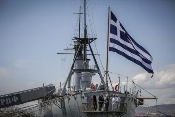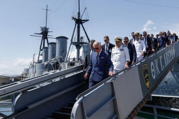 Αεροπορική επίδειξη πραγματοποιήθηκε κατά τη διάρκεια της επίσκεψης του πρίγκιπα της Ουαλίας, Καρόλου, στο θωρηκτό «Γ. Αβέρωφ»