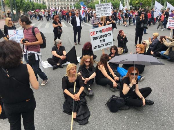Μετά τη συγκέντρωση διαμαρτυρίας έξω από το υπουργείο Εργασίας, όπου πληροφορήθηκαν ότι ο νόμος Κατρούγκαλου δεν αλλάζει, οι χήρες γυναίκες έκλεισαν τον δρόμο έξω από τη Βουλή με αποτέλεσμα να χρειάζονται κυκλοφοριακές ρυθμίσεις στη Βασιλίσσης Σοφίας.
