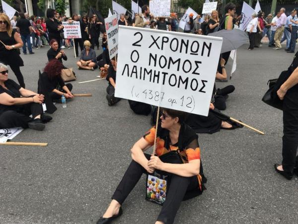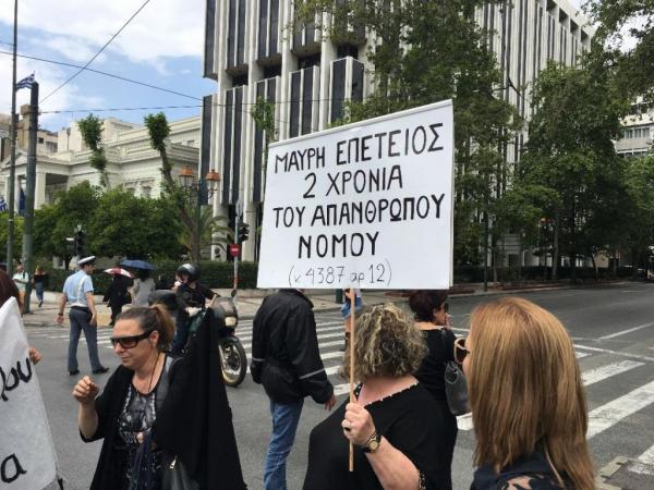 Νωρίτερα πραγματοποίησαν συγκέντρωση διαμαρτυρίας έξω από υπουργείο Εργασίας, λόγω της συμπλήρωσης δύο ετών από την ψήφιση του νόμου Κατρούγκαλου