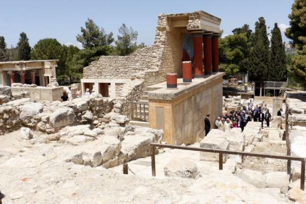 Με επίσκεψη στον αρχαιολογικό χώρο της Κνωσού συνεχίστηκε η τριήμερη επίσκεψη που πραγματοποιούν στην Ελλάδα ο πρίγκιπας της Ουαλίας, Κάρολος και η δούκισσα της Κορνουάλης, Καμίλα.
