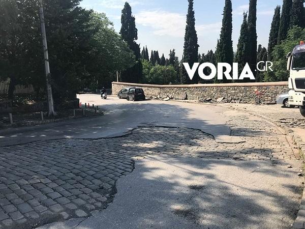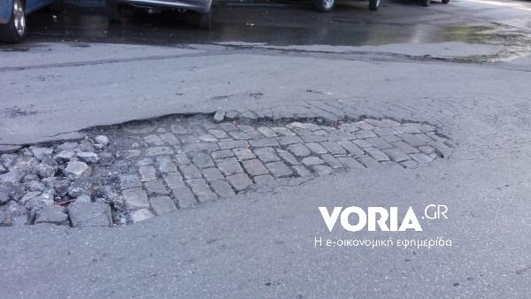 Ο μεγάλος όγκος νερού δεν προκάλεσε μόνο λακκούβες αλλά αποκάλυψε και τα λιθόστρωτα της παλιάς Θεσσαλονίκης.