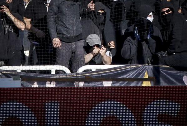 Οπαδοί εκατέρωθεν περνούσαν στον αγωνιστικό χώρο κάθε λογής αντικείμενο, από φωτοβολίδες, μέχρι και κόφτες!
