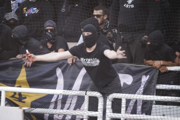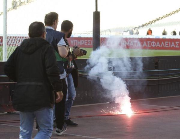 Οπαδοί εκατέρωθεν περνούσαν στον αγωνιστικό χώρο κάθε λογής αντικείμενο, από φωτοβολίδες, μέχρι και κόφτες!