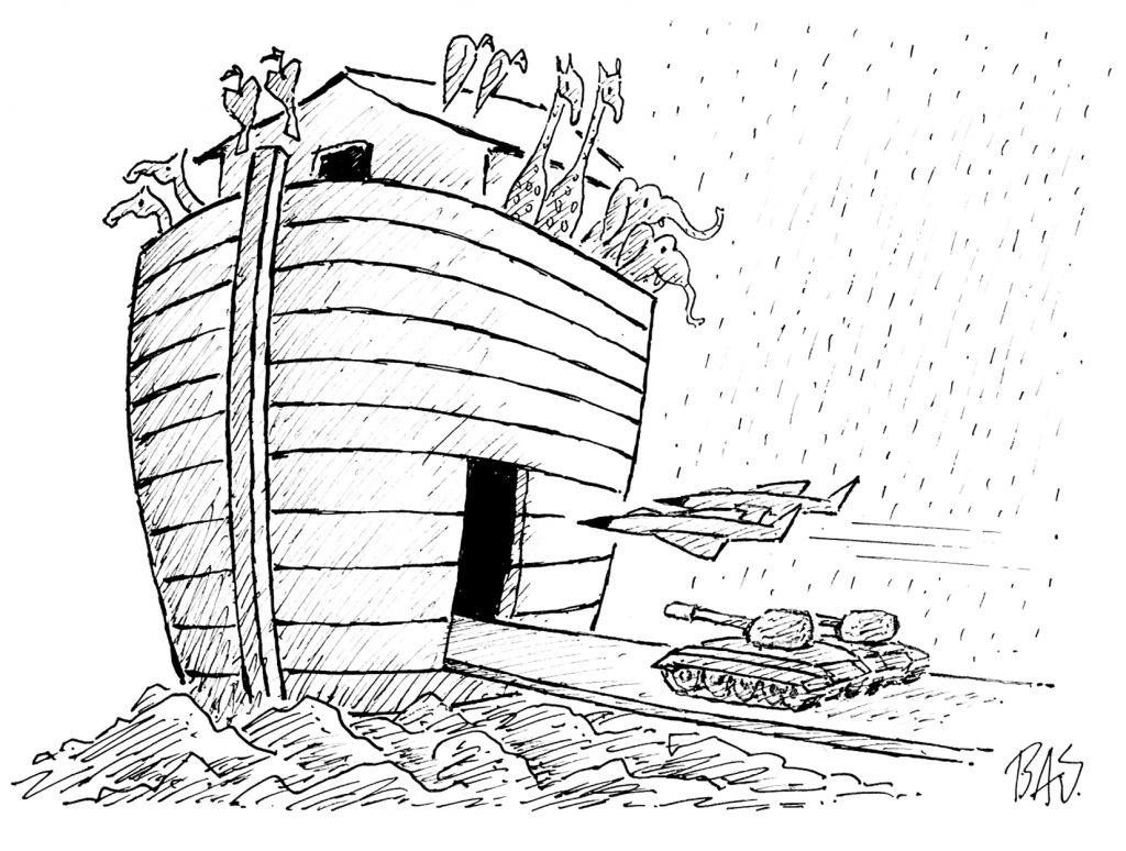 Επιστρατεύουν τα πενάκια τους και μιλούν με τον μοναδικό τους τρόπο για ένα από τα πιο επίκαιρα θέματα της εποχής: Τον πόλεμο. Οι Έλληνες γελοιογράφοι έχουν, άλλωστε, αποδείξει τα τελευταία χρόνια ότι δίνουν το «παρών» στα γεγονότα με οξεία αντανακλαστικά και ευαίσθητες κεραίες.