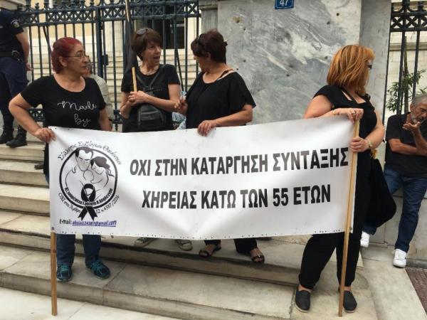 To «παρών» έδωσαν και χήρες ντυμένες στα μαύρα που ζητούν να μην καταργηθεί η σύνταξη χηρείας κάτω από 55 ετών.