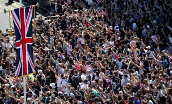 Αμέσως μετά το μυστήριο οι νεόνυμφοι επιβιβάστηκαν στην βασιλική άμαξα και για 25 λεπτά έκαναν την καθιερωμένη πομπή στους δρόμους του Λονδίνου όπου τους αποθέωσαν χιλιάδες Βρετανοί.