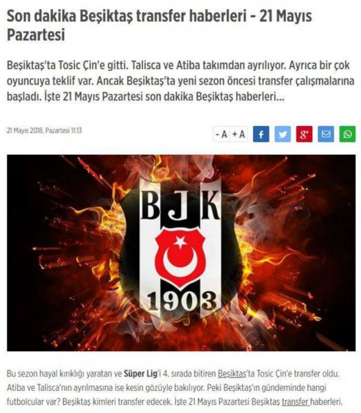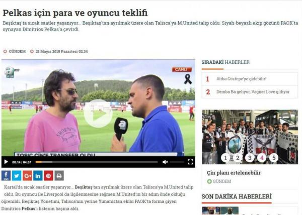 Επίσης η «kartalbakisi» αναφέρει: «H Μάντσεστερ Γιουνάιτεντ έχει έντονο ενδιαφέρον για τον Ταλίσκα, ο οποίος απ’ ότι φαίνεται θα αφήσει τους ασπρόμαυρους για τους ‘’κόκκινους διαβόλους’’ Η Μπεσίκτας φαίνεται πως έχει βρει τον αντικαταστάτη του Ταλίσκα στο πρόσωπο του Δημήτρη Πέλκα ο οποίος παίζει στον ΠΑΟΚ».