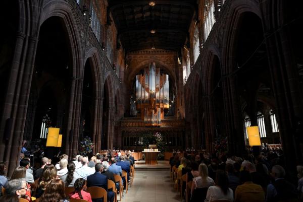 Εντός της εκκλησίας, είχαν ανάψει 22 κεριά στη μνήμη των θυμάτων, οι φωτογραφίες των οποίων προβάλλονταν σε οθόνες που είχαν εγκατασταθεί. Η τελετή αναμεταδόθηκε σε μια μεγάλη οθόνη έξω από τον ιερό ναό, όπως και στο Γιορκ, το Λίβερπουλ και τη Γλασκώβη (Σκωτία).