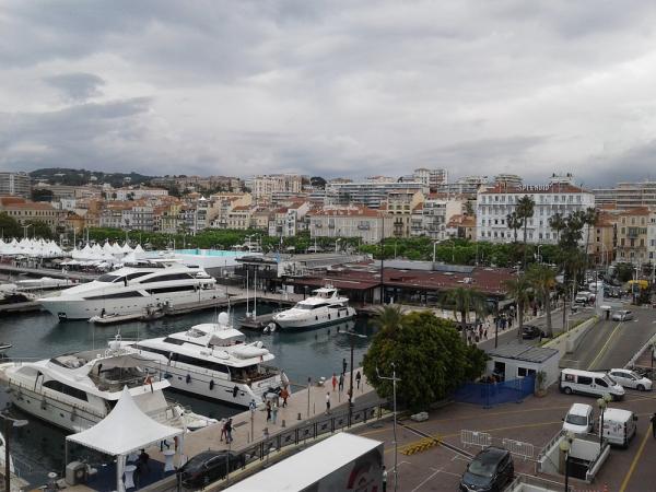 Άποψη του Λιμανιού και της πόλης των Καννών από το μπαλκόνι της Terrasse Audiovisuelle του Palais, λίγο πριν από τη συνάντησή μου με την Ιταλίδα σκηνοθέτρια Αλις Ροχρβάχερ