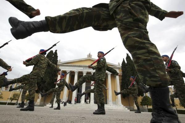 Εύζωνες κατά τη διάρκεια τέλεσης της υπηρεσίας τους