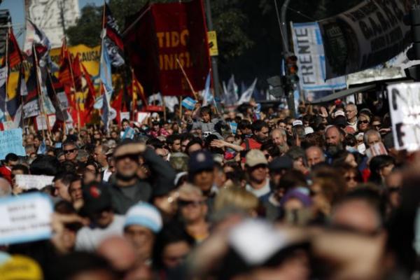 Με το σύνθημα «η χώρα κινδυνεύει» χιλιάδες πολίτες διαδήλωσαν στους δρόμους κατά των διαπραγματεύσεων του Μπουένος Άιρες με το ΔΝΤ