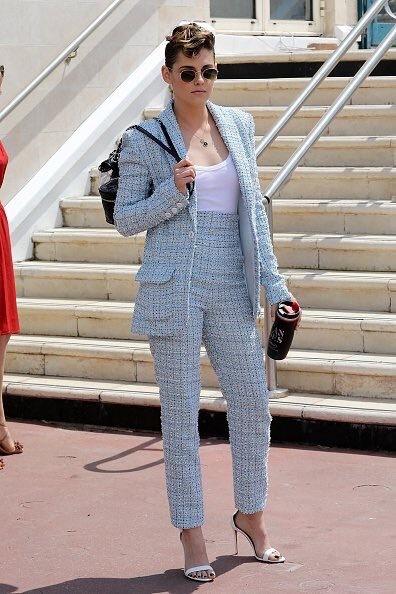 Κρίστεν Στούαρτ με Chanel κοστούμι. Η σχέση της ηθοποιού με τον οίκο Chanel δεν είναι μόνο στενή αλλά και επαγγελματική. Η Στούαρτ είναι εκπρόσωπος τους και πάντα στην πρώτη θέση των επιδείξεων, στα πλαίσια εκμοντερνισμού του οίκου, οι υπεύθυνοι μάρκετινγκ βρήκαν στο πρόσωπο της την κατάλληλη εκπρόσωπο. Με μπλε τουίντ κοστούμι, λευκά πέδιλα, στρογγυλά γυαλιά και το συνηθισμένο βαριεστημένο της ύφος απέδειξε πως το class δεν έχει ηλικία (η διάθεση επίσης).