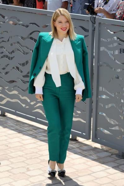 Η Λεά Σειντού χαμογελαστή με Louis Vuitton σύνολο στο πράσινο χρώμα ήταν πραγματικά κομψή και στιλάτη. Με κόκκινο κραγιόν και ασπρόμαυρες γόβες έδωσε έναν νεανικό χαρακτήρα σε μία εμφάνιση συντηρητική αλλά με έναν αέρα χαρούμενο και σύγχρονο. Επέλεξε πουκάμισο με όγκο στα μανίκια και δεν έδεσε τον φιόγκο στην λαιμόκοψη με αποτέλεσμα να φαίνεται πιο χαλαρό σε μία επίσημη πρεμιέρα.