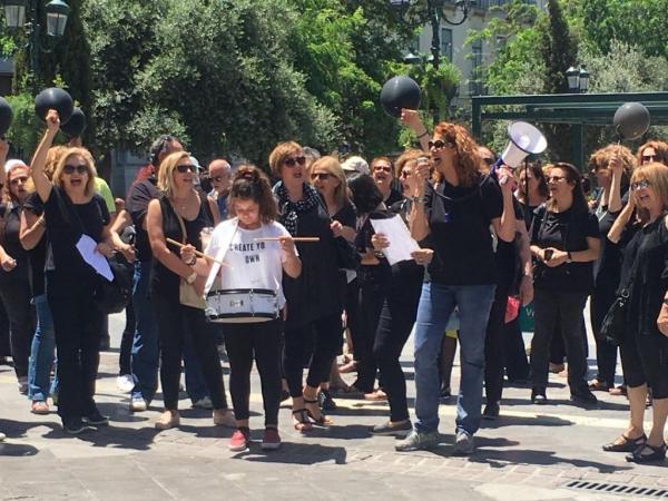 Αμέσως μετά οι συγκεντρωμένες μοίρασαν ενημερωτικά φυλλάδια, κατευθυνόμενες προς την πλατεία Συντάγματος όπου και θα συνεχίσουν την διαμαρτυρία τους.