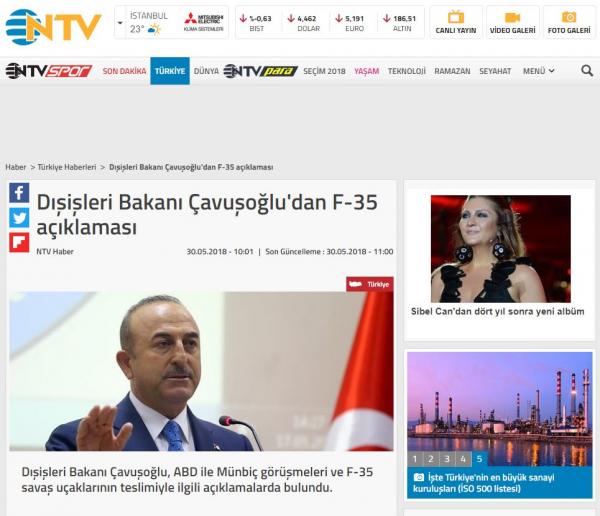 Την πεποίθηση πως οι ΗΠΑ θα παραδώσουν τα μαχητικά F-35 στην Τουρκία εξέφρασε ο τούρκος υπουργός Εξωτερικών, Μεβλούτ Τσαβούσογλου, ξεκαθαρίζοντας ωστόσο πως, εάν η Ουάσιγκτον δεν ανταποκριθεί, η Άγκυρα θα πρέπει να στραφεί αλλού ώστε να ικανοποιήσει τις ανάγκες της. Σε ακραία περίπτωση, μάλιστα, θα μπορούσε να αποκλείσει τους Αμερικανούς από τη βάση του Ιντσιρλίκ.