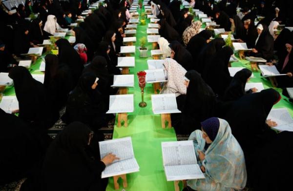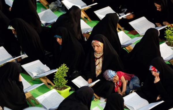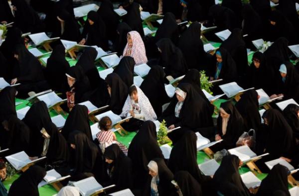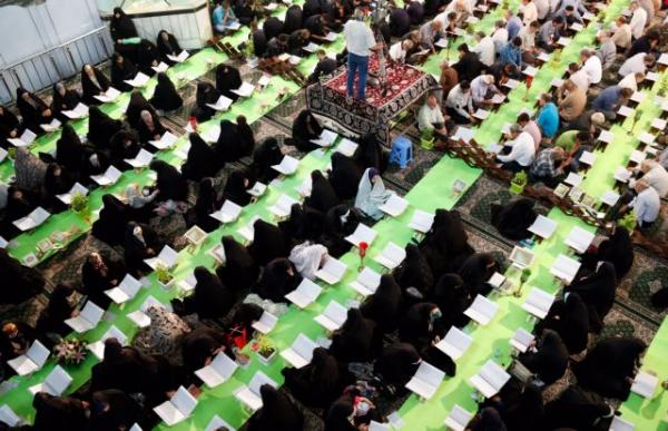 Άνδρες και γυναίκες προσεύχονται σε τζαμί στην πόλη Shahre-Ray του Ιράν κατά τη διάρκεια του Ραμαζανιού.