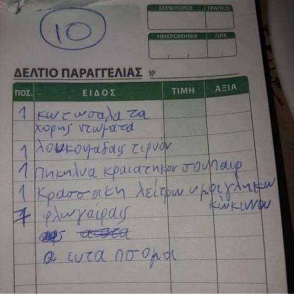 Το γύρο του διαδικτύου κάνει τις τελευταίες μέρες φωτογραφία παραγγελίας σε ταβέρνα στην Κρήτη.