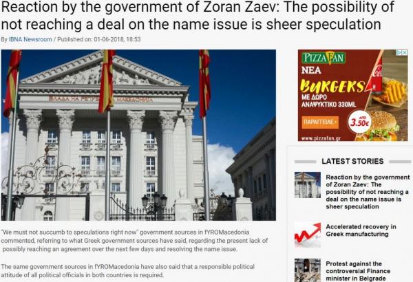 Με αιχμηρό σχόλιο απάντησαν στις ελληνικές κυβερνητικές πηγές κύκλοι από την ΠΓΔΜ, τονίζοντας ότι «αυτές τις στιγμές δεν πρέπει να υποκύπτουμε σε εικασίες», ενώ απευθύνουν έκκληση «για υπεύθυνη πολιτική στάση όλων των πολιτικών παραγόντων».