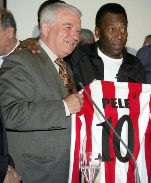 Στις 4 Ιουνίου 1961, κατά τον φιλικό αγώνα του Ολυμπιακού με τη Σάντος από τη Βραζιλία (που εκείνη την περίοδο πραγματοποιούσε περιοδεία στην Ευρώπη) στο γήπεδο της Λεωφόρου Αλεξάνδρας ήταν ο προσωπικός αντίπαλος του Πελέ και σύμφωνα με δημοσιεύματα της εποχής συνέβαλε τα μέγιστα στην επικράτηση των «ερυθρολεύκων» (2-1), καθώς είχε περιορίσει αισθητά τη δυναμική του Βραζιλιάνου άσου.