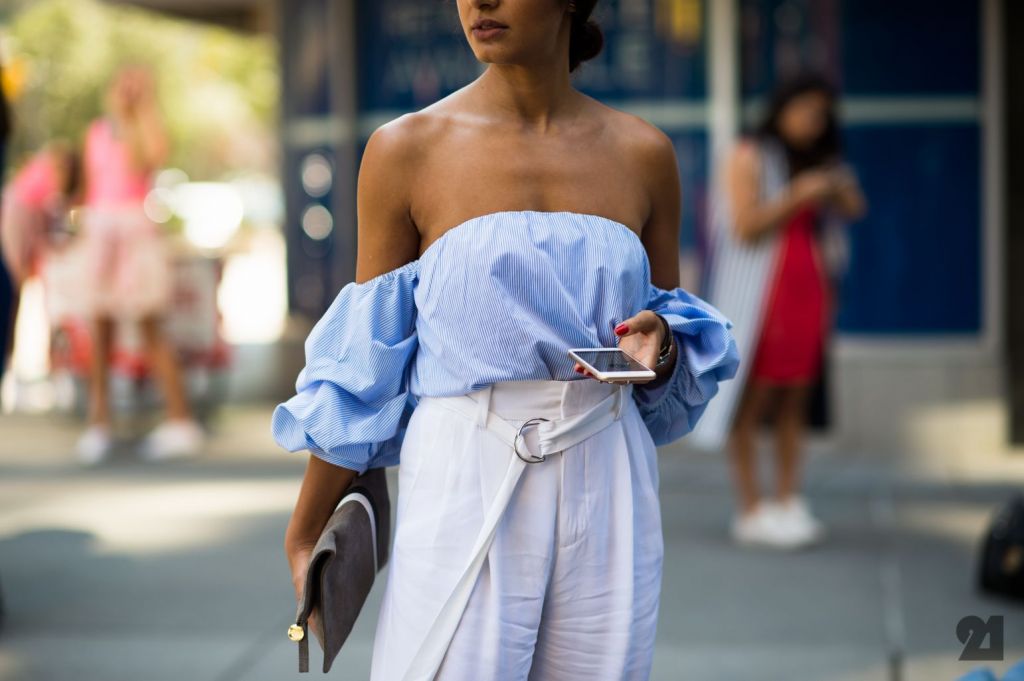 Την off-the-shoulder τάση μπορείς να την υποστηρίξεις από νωρίς το πρωί για τις ολοήμερες υποχρεώσεις σου και θα βγεις κερδισμένη. Ο λόγος είναι πως θα σε βοηθήσει να μην αποκτήσεις το αντιαισθητικό σημάδι της τιράντας λόγω της έκθεσής σου στον ήλιο. Άρα δύο σε ένα. Στυλ και προστασία μαζί.