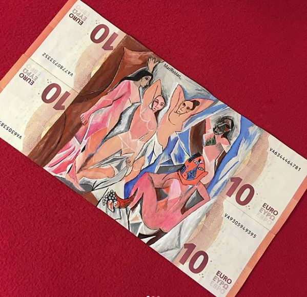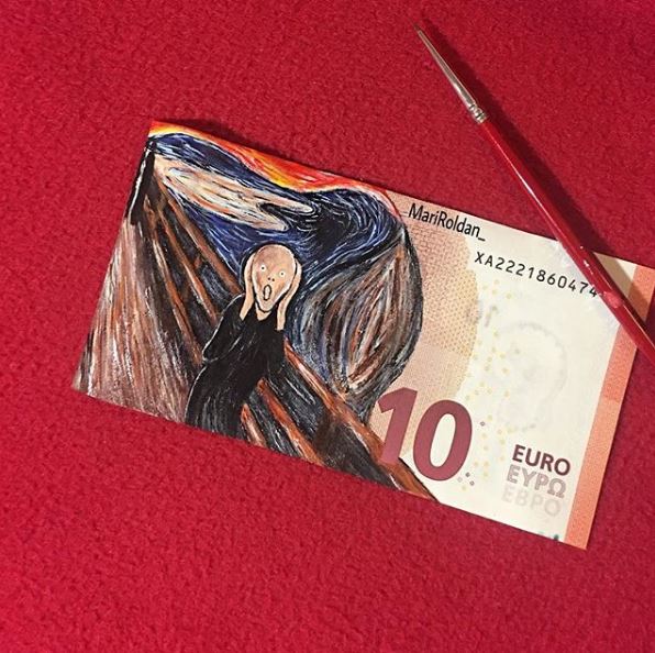 Η νεαρή καλλιτέχνης Mari Roldan ζωγραφίζει ορισμένους από τους διασημότερους πίνακες του κόσμου, πάνω σε χαρτονομίσματα του ευρώ