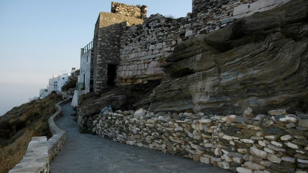 O μεσαιωνικός οικισμός του Κάστρου, ανάλογος με εκείνους που συναντώνται στην Aντίπαρο, την Kίμωλο και τη Φολέγανδρο, ακολουθεί το ανάγλυφο του εδάφους και έχει αμυντικό χαρακτήρα. Οι εξωτερικοί τοίχοι των λαϊκών κατοικιών με τα μικρά παράθυρα και τις χαμηλές πόρτες αποτελούσαν τον εξωτερικό αμυντικό δακτύλιο, ενώ τα αρχοντόσπιτα συγκροτούσαν τον εσωτερικό αμυντικό δακτύλιο.