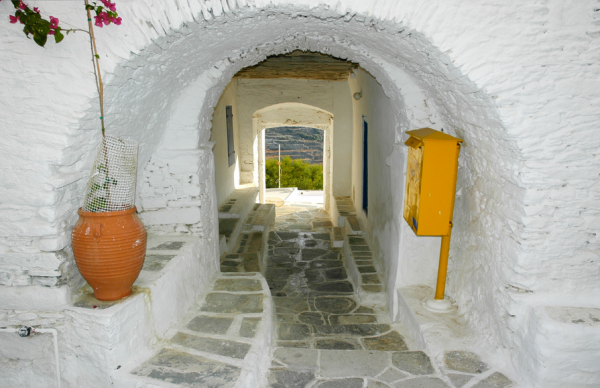 Αρχιτεκτονικά μέλη, κορμοί αγαλμάτων, επιτύμβιες στήλες, επιγραφές και άλλα αρχαία μαρμάρινα αντικείμενα εντοιχισμένα σε διώροφα ή τριώροφα σπίτια, εκκλησίες 16ου και 17ου αιώνα, αρχοντικά με βενετσιάνικες επιγραφές και οικόσημα φανερώνουν τη μακρά ιστορική διαδρομή του οικισμού.