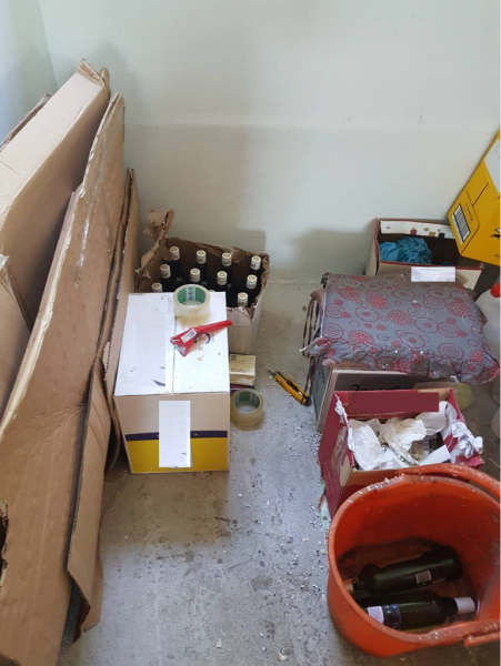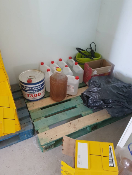 • Εντός του ενός αποθηκευτικού χώρου, εντοπίσθηκαν και υπολείμματα αγνώστου ταυτότητας υγρού.