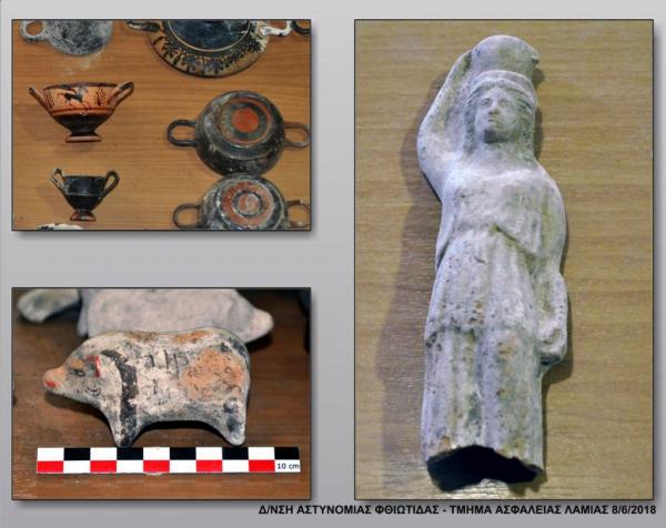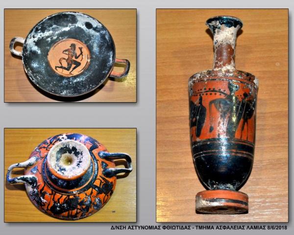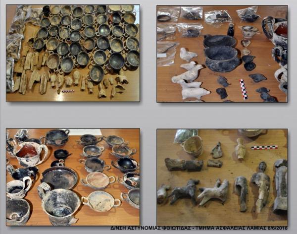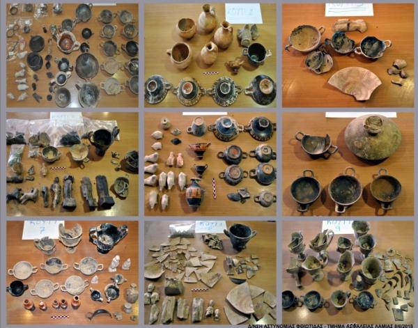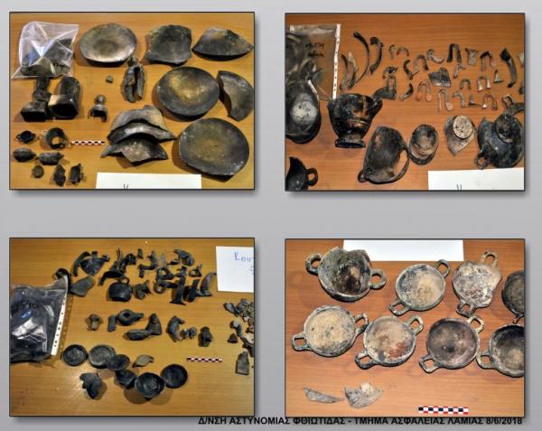 «Πρόκειται για κοινούς λοκρικούς τύπους αγγείων και ειδωλίων που χρονολογούνται κατά το πλείστον εντός του 5ου αι. π.Χ. και αποτελούν αντικείμενα λαθρανασκαφής νεκροταφείου ή νεκροταφείων της περιοχής, επιβεβαιώνοντας την συνήθεια, που έχει παρατηρηθεί σε λοκρικά ταφικά σύνολα, της τοποθέτησης σε κάθε ταφή μεγάλου αριθμού κτερισμάτων, κυρίως αγγείων. Τα αντικείμενα θα μεταφερθούν εντός της εβδομάδος από την Ασφάλεια Λαμίας στην Εφορεία Φθιώτιδος και Ευρυτανίας και μετά την συντήρησή τους, θα αποτελέσουν αντικείμενο εξέτασης από ειδική επιστημονική επιτροπή, η οποία θα αποφανθεί για την χρηματική αξία τους», αναφέρει η ανακοίνωση.