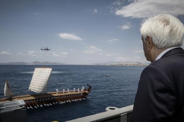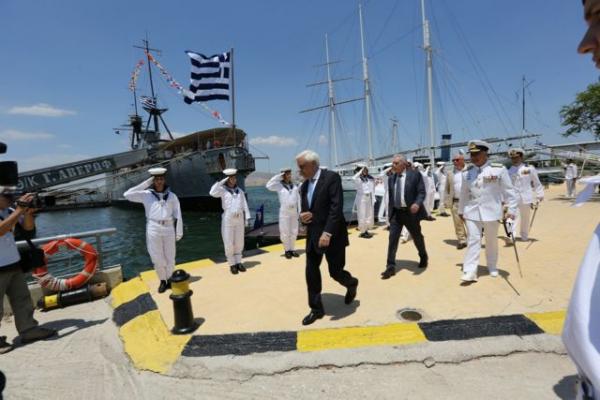 Ο Πρόεδρος της Δημοκρατίας, Προκόπης Παυλόπουλος, επιθεώρησε εν πλω τον ελληνικό στόλο πολεμικών πλοίων στο πάρκο ναυτικής παράδοσης στο Τροκαντερό.
