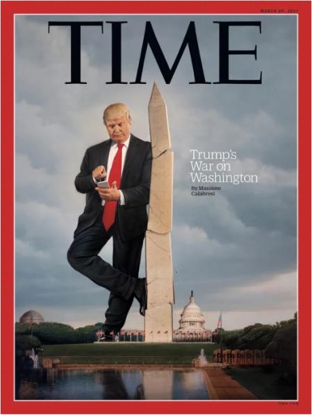 Με έναν άκρως καυστικό τρόπο επέλεξε το περιοδικό Time να αποτυπώσει τον Τραμπ και την ιδέα που έχει εκείνος για τον εαυτό του.