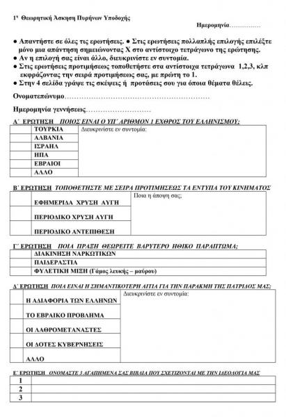 Ενδιαφέρον παρουσιάζει το ιδεολογικό σκέλος του ερωτηματολογίου. Τα επίδοξα μέλη καλούνται να απαντήσουν σε μία σειρά ερωτήσεων όπως: «Ποιος είναι ο υπ’ αριθμόν 1 εχθρός του ελληνισμού». Οι πιθανές απαντήσεις είναι: Τουρκία, Αλβανία, Ισραήλ, ΗΠΑ, Εβραίοι ή Άλλο.