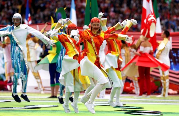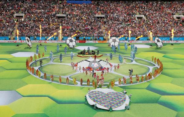 Από την εγχώρια μουσική σκηνή, επί… χόρτου βρέθηκαν ο πιανίστας Ντένις Ματσούεφ, οι παγκοσμίου φήμης αστέρες της όπερας Άννα Νετρέμπκο, Γιουσίφ Εϊβαζόφ, Ιλντάρ Αμπντραζάκοφ και Αλμπίνα Σαγκιμουράτοβα. Λίγο πριν την σέντρα του εναρκτήριου αγώνα, οι Γουίλ Σμιθ, Νίκι Τζαμ και Έρα Ιστρέφι θα αποδώσουν το τραγούδι του 21ου Παγκοσμίου Κυπέλλου που έχει τίτλο Live It Up.