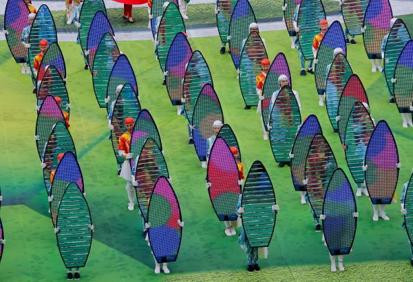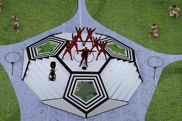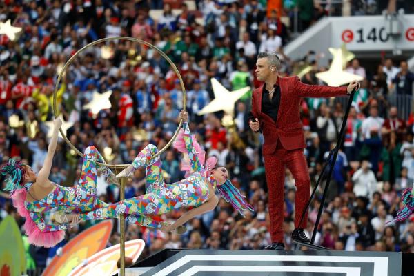 O Ρόμπι Γουίλιαμς βρέθηκε στη μέση του γηπέδου και με ένα πολύ εντυπωσιακό σκηνικό ξεκίνησε να τραγουδάει τις μεγάλες του επιτυχίες στην τελετή έναρξης του Παγκόσμιου Κυπέλλου.