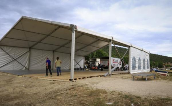 Ο Έλληνας πρωθυπουργός και οι υπόλοιποι αξιωματούχοι θα τους υποδεχθούν στη μαρίνα και αμέσως μετά θα μεταβούν πεζή, σε απόσταση λίγων μέτρων, στη διαμορφωμένη εξέδρα που έχει στηθεί και διαθέτει τέντα για προστασία από καιρικά φαινόμενα. Οι προετοιμασίες είναι ακόμα πυρετώδεις για το στήσιμο της εξέδρας και χρειάστηκε η μεταφορά υλικών με φορτηγά προς το μικρό χωριό των Ψαράδων, όπου όλα και όλοι κινούνται στους ρυθμούς της αυριανής τελετής.