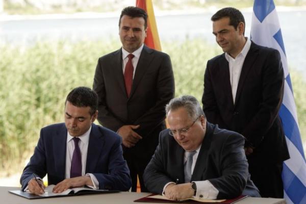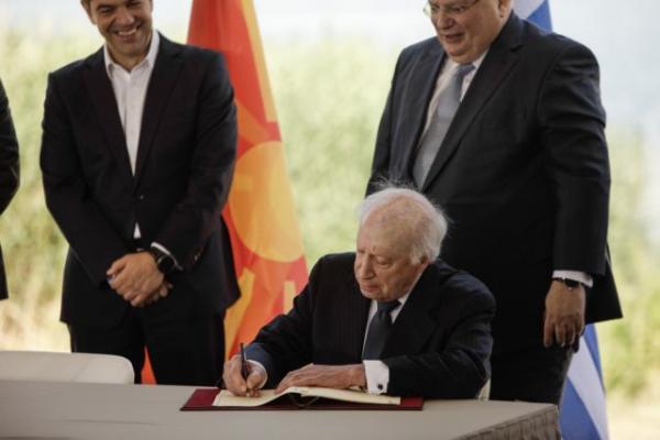 Με τις υπογραφές των υπουργών Εξωτερικών Νίκου Κοτζιά και Νίκολα Ντιμιτρόφ και τις ομιλίες των πρωθυπουργών Αλέξη Τσίπρα και Ζόραν Ζάεφ επισημοποιήθηκε η νέα ονομασία της ΠΓΔΜ