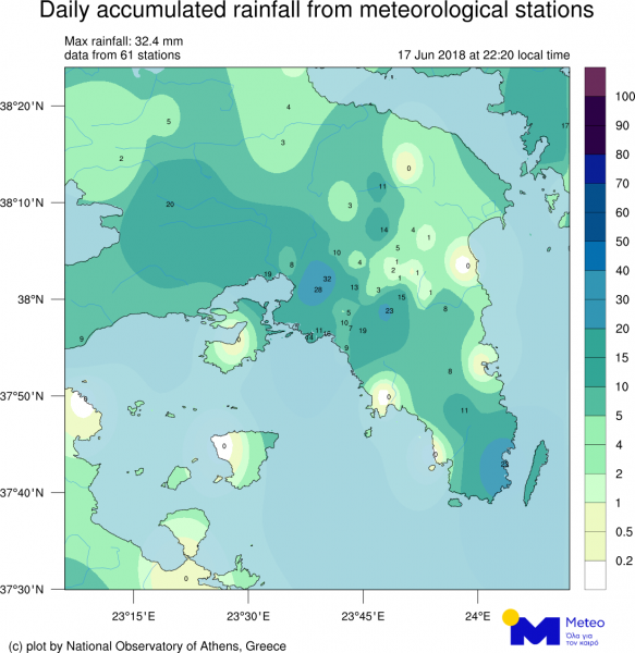 Σημαντικά ύψη βροχής προκάλεσε ο Μίνωας στην Αττική και την Κυριακή 17 Ιουνίου.